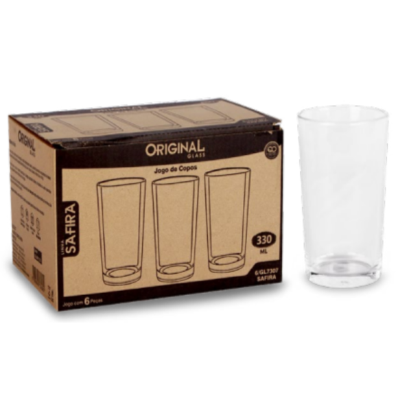 2. JOGO 6 COPO SAFIRA 330ML VIDRO AGUA/SUCO