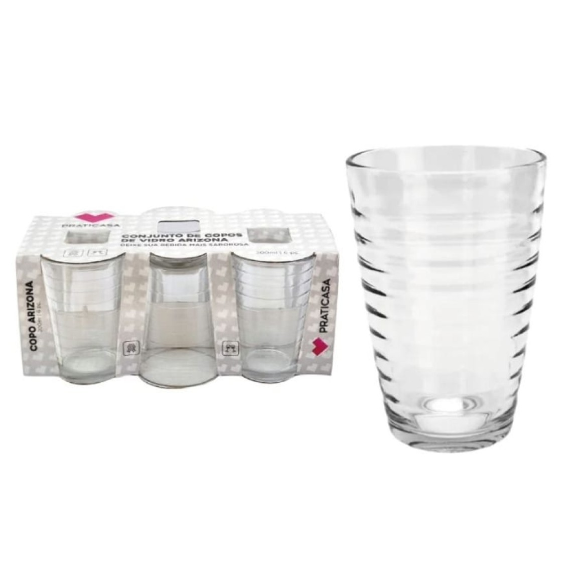 2. JOGO 6 COPO VIDRO 200ML ARIZONA LUVA