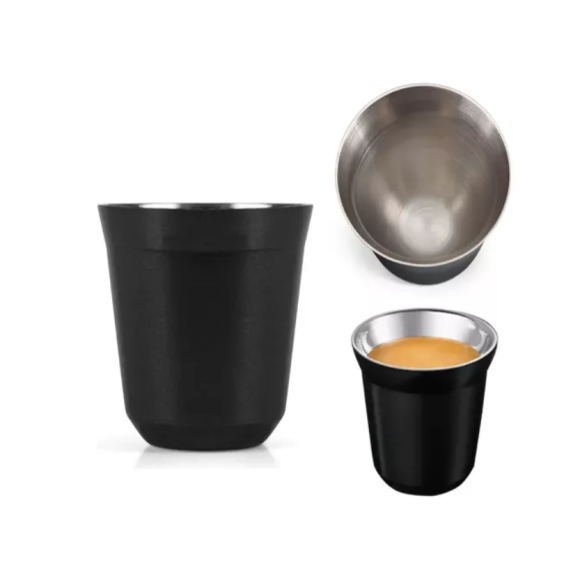 JOGO 2 COPO INOX 90ML PAREDE DUPLA PRETO