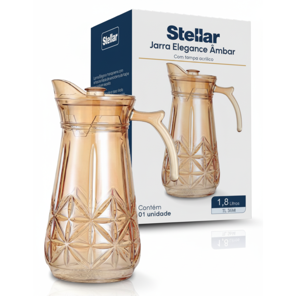 JARRA DE VIDRO 1,8L DIAMOND AMBAR COM TAMPA ACRILICA