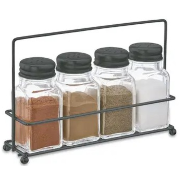 PORTA TEMPERO VIDRO C/4 QUADRADO TAMPA-PRETA + SUPORTE
