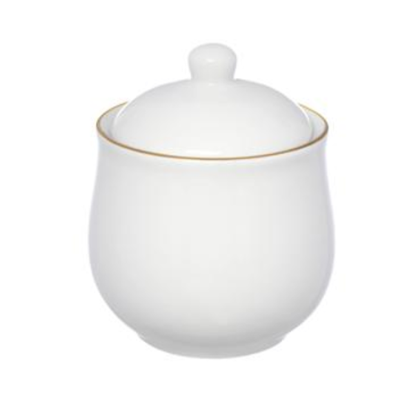 ACUCAREIRO PORCELANA 300ML BRANCO BORDA-OURO