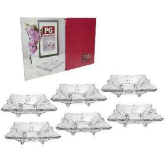 JOGO 6 BOWL SOBREMESA VIDRO 260ML QUADR C/PE